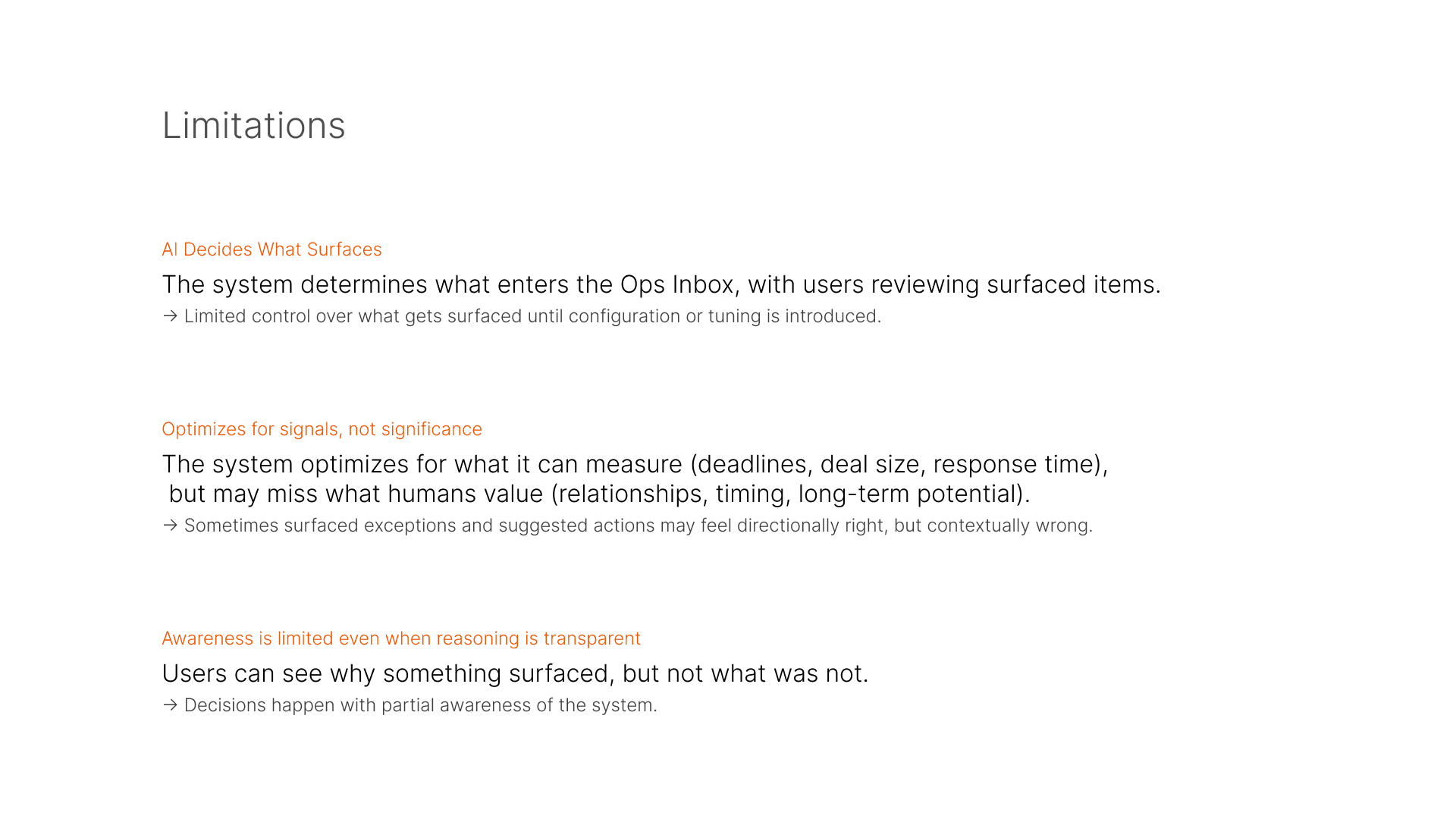 CRMs are built to store interactions, but selling depends on understanding them. Conversations happen across meetings, Slack threads, emails, and informal discussions, while the system waits for users to update and interpret it. The software records what happened after the fact instead of helping decide what should happen next. Users must notice risk, decide next steps, and manually drive progress.