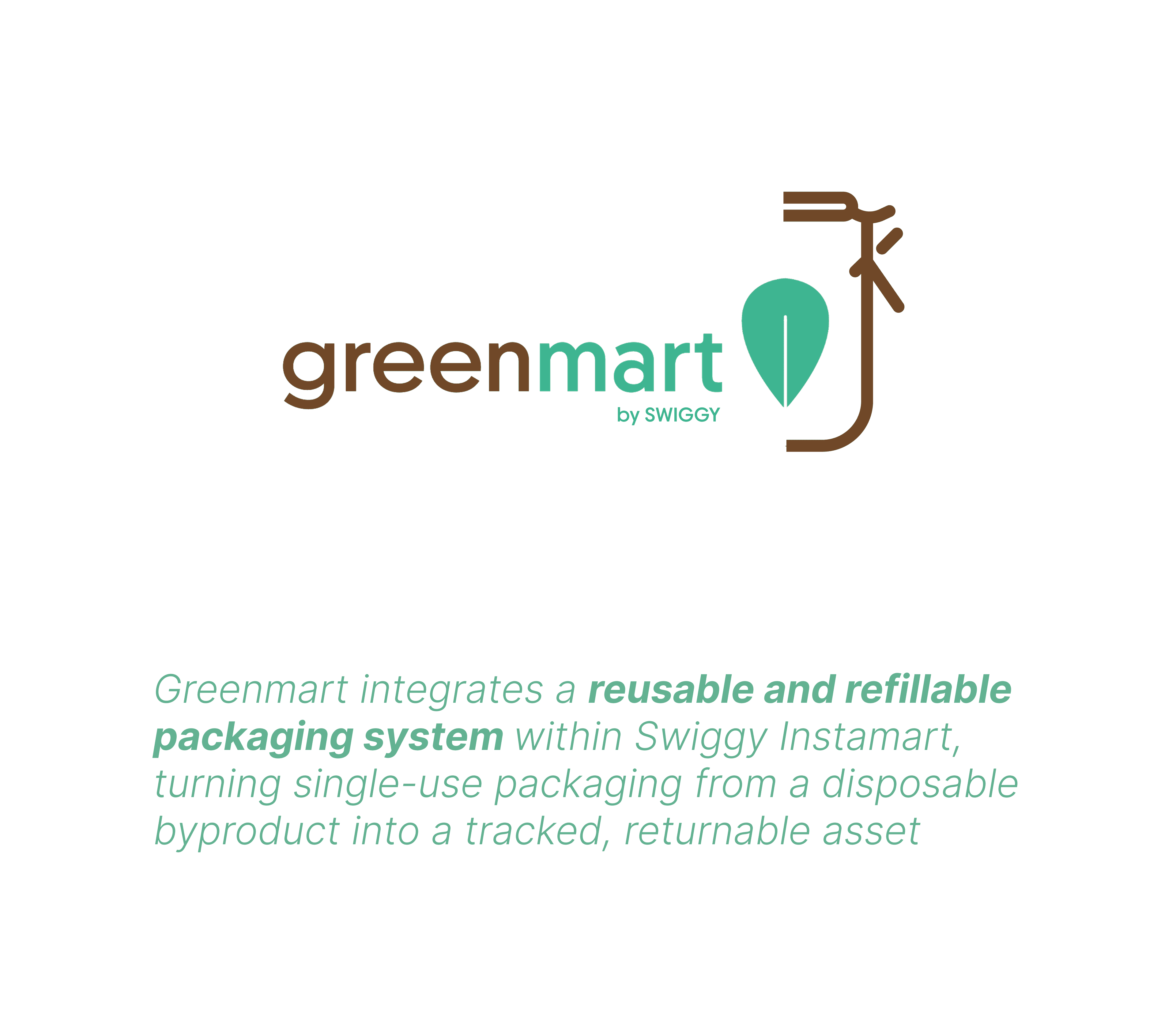 Greenmart introduces a reuse-and-refill packaging system embedded within Swiggy Instamart, transforming packaging from a disposable byproduct into a managed, returnable asset. By aligning digital choice, logistics, and infrastructure, the system enables plastic reduction at scale.